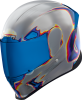DESCRIPCIÓN: Este es Ground Control para Major Badass. El casco AirframePro Reentry cuenta con un gráfico de alta temperatura que se funde con metal sobre una carcasa de fibra de vidrio FRP hecha a mano. El material de la carcasa es resistente pero liviano, y su forma está diseñada para una resistencia mínima, en la pista o en la calle. Este casco con certificación DOT/ECE/PSC tiene la forma de cabeza ovalada intermedia de ICON para adaptarse a la mayoría de los motociclistas. Sea testigo de su regreso de las estrellas a través de una pantalla Fog-Free Optics™ sin distorsión.