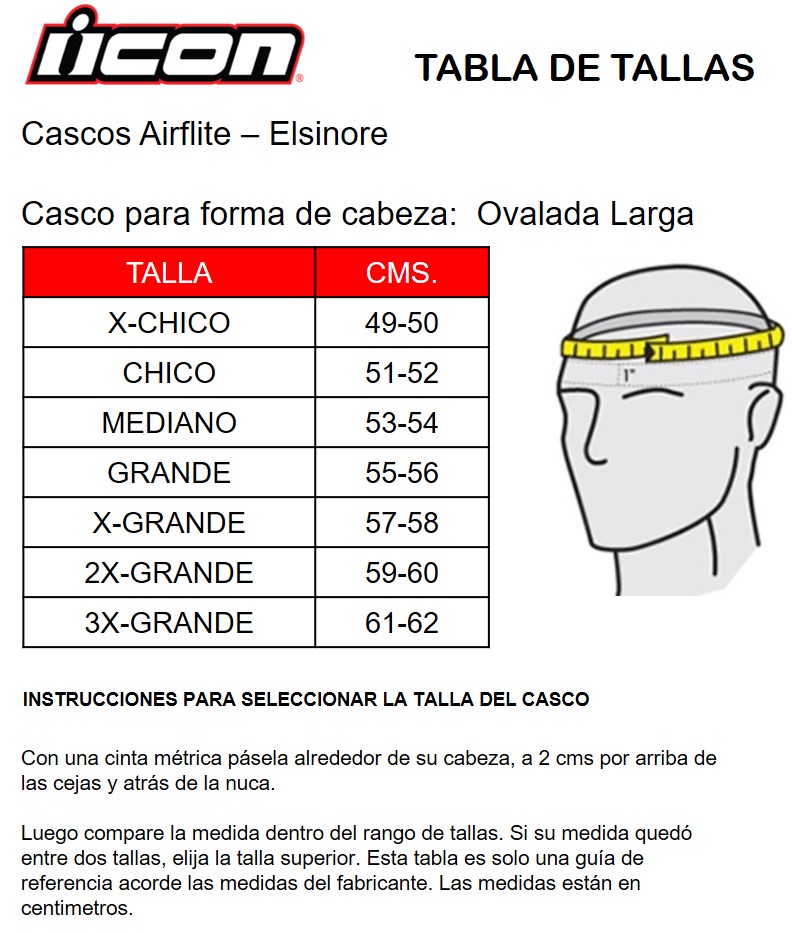 Los cascos Icon vienen reducidos. La tabla de tallas ya viene ajustada a la realidad.